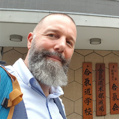 Nel 1991, a diciannove anni, inizia la pratica dell’Aikido e del Kenjutsu con Gaetano Fetonti Sensei, graduandosi Shodan nel 2006 e Nidan nel 2008 con Tamura Nobuyoshi Shihan.