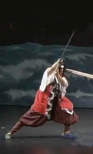 Nelle rappresentazioni infatti vediamo sempre che sugli aori dei funzionari spicca il mon degli Hosokawa, il sole con otto pianeti. Una fantasiosa ricostruzione del bokuto con cui Musashi affrontò anche questo mortale confronto, come quasi tutti i precedenti, si intravede a destra. Si sarebbe trattato in questo caso di un bokuto di fortuna, ricavato durante la traversata dal remo di riserva della barca.