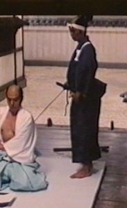 Quando era messo sull’avviso per tempo, come quando ad esempio doveva fungere da secondo in un seppuku rituale, aveva tempo di prepararsi a dovere; il fotogramma proviene da Senno Rikyu (Morte di un maestro del te) e si riferisce al seppuku di Furuta Oribe, sulla sinistra.
