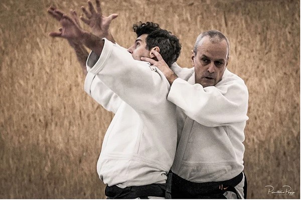 Altra domanda molto stimolante. Non saprei dire se esiste o meno una dicotomia tra vita al di fuori del Budo e il tatami. Certo il dubbio del doversi porre la questione ci può essere. La sensazione, a volte, è che ci si sia fatti prendere la mano dalla messa in scena. Non do a questi termini (messa in scena) una connotazione negativa, anzi! La forza della nostra disciplina è la possibilità, se non necessità, di creare una messa in scena. Tutto ciò che accade sul tatami è il frutto della volontà di perseguire una relazione. Al di fuori di questo si va dalla lotta libera alla libera rissa. A volte sembra che la messa in scena prenda la mano e si sprecano parole su mondi (aikidoistici) fantastici.
